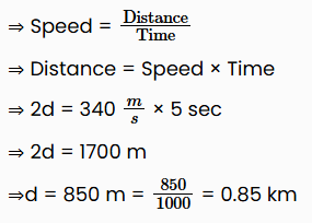 An echo is heard after 5 seconds of the production of sound which moves with a speed of 340 m/s. What is the distance of the mountain from the source of sound which produced the echo?