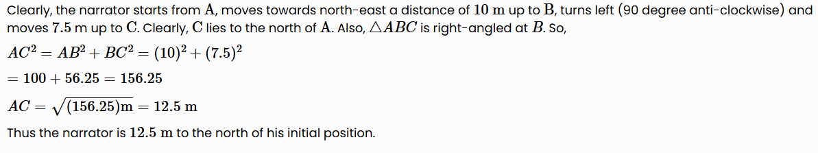 If you are facing north-east and move 10 m forward, turn left and move 7.5 m, then you are: