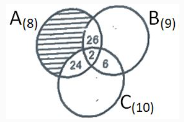 n(A)=67n(B)=46n(C)=40n(AB)=28n(BC)=8n(AC)=26n(ABC)=2