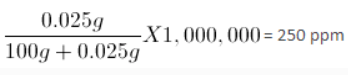 Suppose that a sample of 100 g of water contains 0.025 g of chlorine. The concentration of chlorine in ppm will be