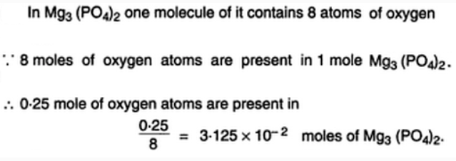 How many moles of magnesium phosphate Mg3(PO4)2 will contain 0.25 moles of oxygen atoms?