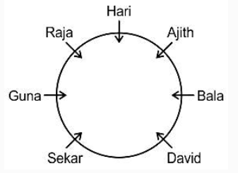 Seven friends - Ajith, Bala, Hari, David, Raja, Sekar, and Guna - are sitting around a circular table. David is not the neighbor of Hari and Raja. Ajith is the neighbor of Bala and Hari. Guna, who is second to the left of David, is the neighbor of Sekar and Raja.