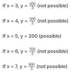 So, total marks scored by the five students in Test 2 = y – 40 and in Test 1 = y – 60 So, 3y – 100 = 100x