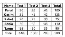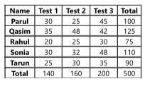 Similarly, Parul’s marks in Test 2 = 160 – (48 + 25 + 32 + 30) = 25