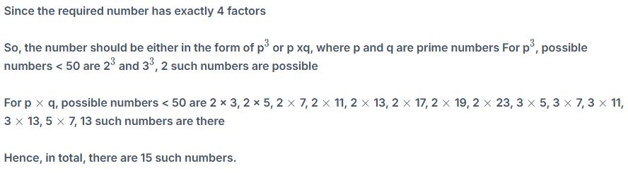 The number of positive integers less than 50, having exactly two distinct factors other than 1 and itself, is