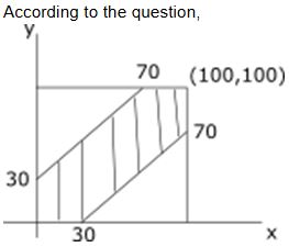 The probability is given by the following graph. The required probability is the area of the shaded region divided by the area of the square.