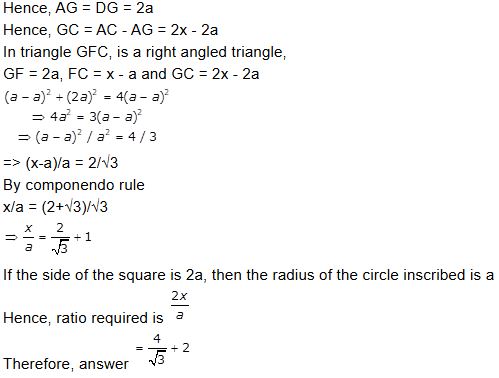 Let the length of the side of the triangle ABC be 2x and the side of the square DEFG inscribed be 2a