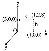 If (h, k) are the perpendicular distances from (1, 2, 3) to the x-axis, z-axis respectively, then hk is: