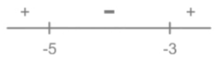 We see that all the numbers less than \(-5\) and all the numbers greater than -3 will give us positive result. While numbers between \(-5\) and \(-3\) will give us negative results.