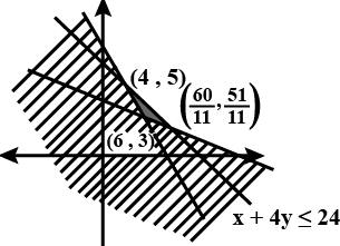 Therefore, \((\mathrm{x}, \mathrm{y})=\left(\frac{60}{11}, \frac{51}{11}\right)\) and \(z=3 x+5 y=\frac{435}{11}=39.54\)