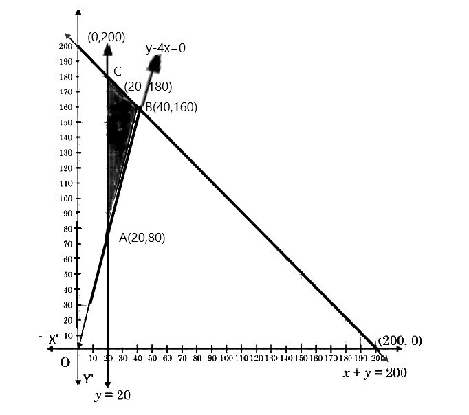 The corner points of the feasible region are \(A(20,80), B(40,160)\), and \(C(20,180)\).
