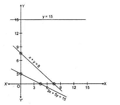 \(Z=3 x+2 y\) Subject to the constraints \(x+y \geq 8,3 x+5 y \leq 15\) and \(x \geq 0, y \leq 15\)