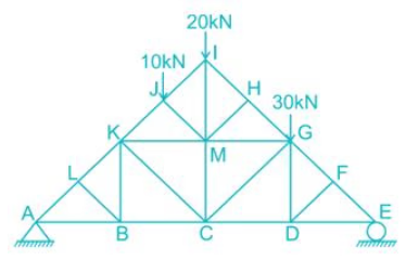 I. Member LK, LA and LB are meeting at joint ‘L’ and AL and LK re co-linear so force in the member LB is zero.