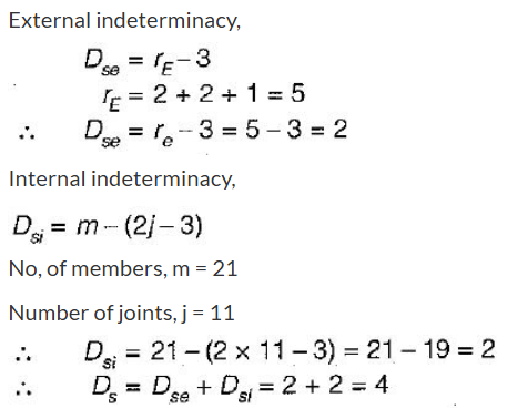 If there are m unknown member forces, r unknown reaction components and j number of joints, then the degree of static indeterminacy of a pin-jointed plane frame is given by​