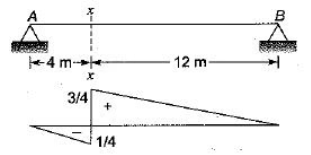 The influence line diagram for bending moment at section X(Mx), at a distance of 4 m from the left support of a simply supported girder AB is shown in figure below. A uniformly distributed load of intensity 2t/m longer than the span crosses the girder from left to right.