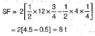 The shear force at section oe due to a uniformly distributed dead load of intensity 2 t/m covering the entire span will be