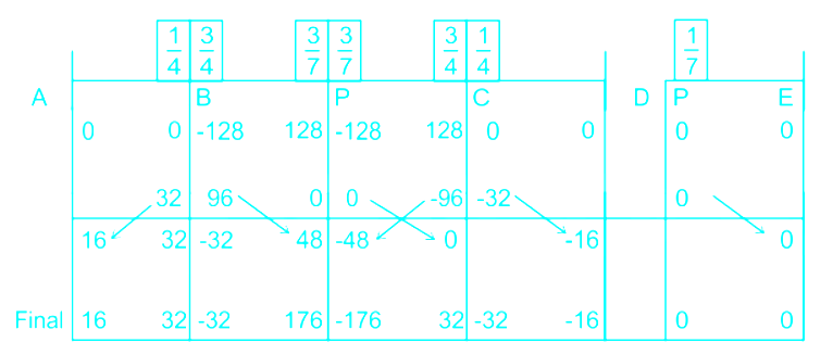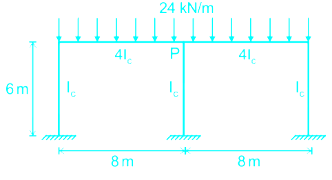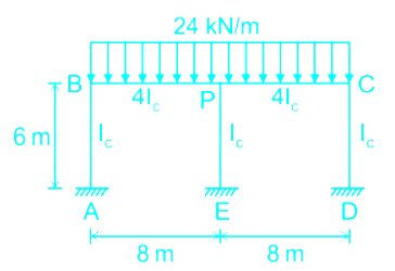 \({{\rm{M}}_{{\rm{PC}}}} = - \frac{{{\rm{W}}{{\rm{L}}^2}}}{{12}} = - \frac{{24 \times {8^2}}}{{12}} = - 128{\rm{\;kN}}.{\rm{m}}\)