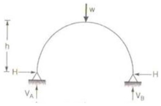 Increase in temperature in a two hinged arch (degree of indeterminacy one ) will cause horizontal thrust only.