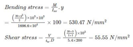 \({f_c} = \frac{{494.80 × {{10}^3}}}{{250 × 400}} + \frac{{494.80 × {{10}^3} × {{\left( {50} \right)}^2} × 12}}{{250 × {{\left( {400} \right)}^3}}}\)
