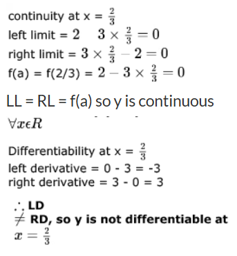 as y is polynomial it is continuous and differentiable at all points but don't know at = 2/3