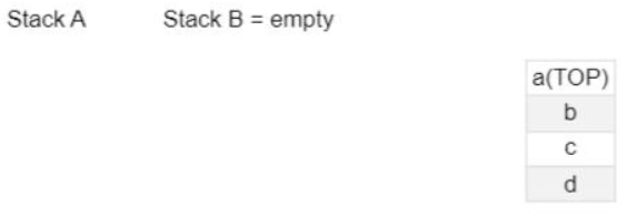 A stack A has 4 entries as following sequence a,b,c,d and stack B is empty. An entry popped out of stack A can be printed or pushed to stack B. An entry popped out of stack B can only be printed.
