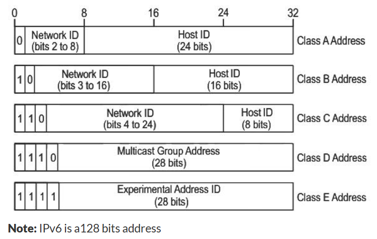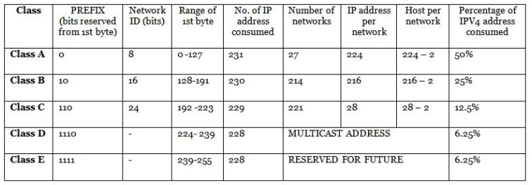 Class D and E are reserved for multicast and experimental purposes.