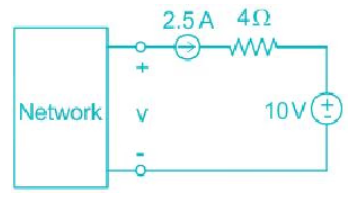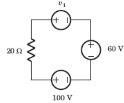 In the circuit given, a charge of 600 C is delivered to the 100 V source in a 1 minute. The value of v1 must be: