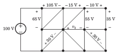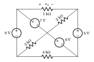Consider the circuit graph shown in fig. Each branch of circuit graph represent a circuit element. The value of voltage v1 is: