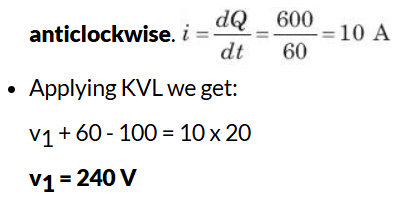 In the circuit given, a charge of 600 C is delivered to the 100 V source in a 1 minute. The value of v1 must be: