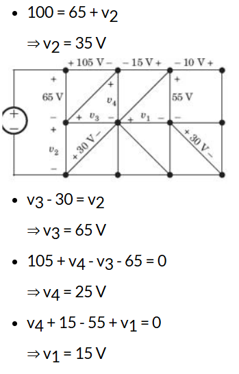 Consider the circuit graph shown in fig. Each branch of circuit graph represent a circuit element. The value of voltage v1 is: