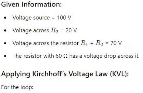 • Resistances: R1 = 2Ω and R2 = 3Ω
