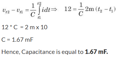 A capacitor is charged by a constant current of 2 mA and results in a voltage increase of 12 V in a 10 sec interval. The value of capacitance is: