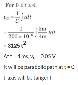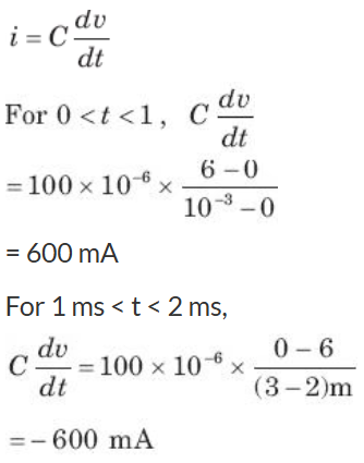 The waveform for the current in a 200 μF capacitor is shown in fig. The waveform for the capacitor voltage is: