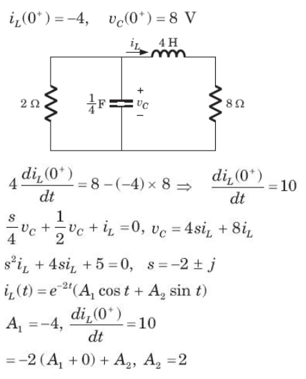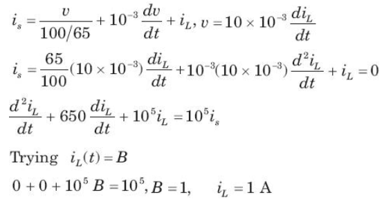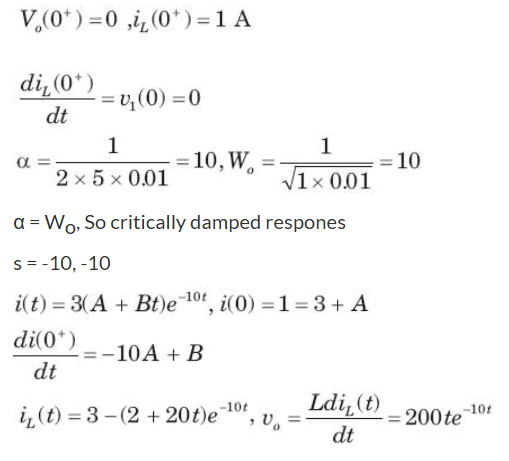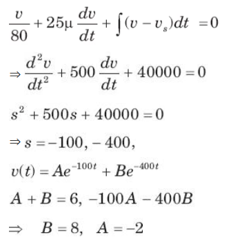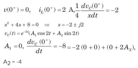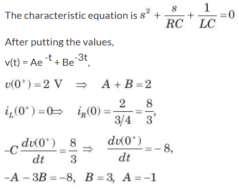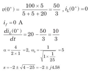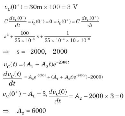 In the circuit of fig. v = 0 for t > 0. The initial condition are v(0) = 6V and dv(0) /dt = -3000 V s. The v(t) for t > 0 is