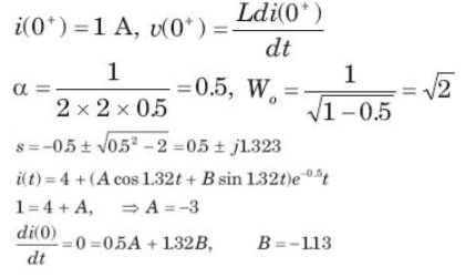 In the circuit of fig. i(0) = 1A and v(0) = 0. The current i(t) for t > 0 is