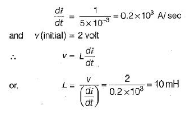 • The current at t = 0 is zero and at t = 5 ms voltage across the element is zero therefore, the element must be an inductor (at t = 0, an inductor acts as open circuit and at t =∞ it behaves as short circuit).
