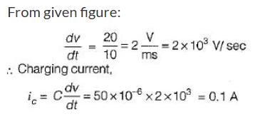 Figure shown below exhibits the voltage-time profile of a source to charge a capacitor of 50 μF. The value of charging current in amperes is: