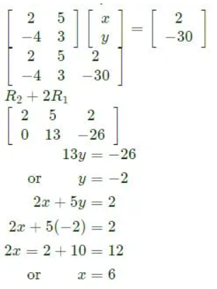 \(=\left[ \begin{matrix} 1 & 1 \\ 0 & -3 \\ \end{matrix}\text{ }\!\!|\!\!\text{ }\begin{matrix} 1 \\ -2 \\ \end{matrix} \right]\)