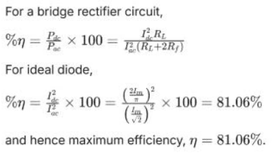 The theoretical maximum efficiency of a bridge rectifier circuit is