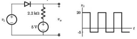 In the question a circuit and a waveform for the input voltage is given. The diode in circuit has cutin voltage Vγ = 0. Choose the option for the waveform of output voltage vo