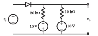 For the circuit in fig. P.3.1.5, let cutin voltage Vγ = 0.7 V. The plot of vo verses vi for -10 ≤ vi ≤10 V is: