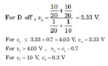 • Diode is off for vi  < 5 V. Hence vo = 5 V.
