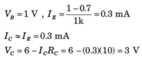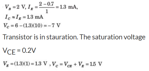 For the transistor in circuit shown in fig. β = 200. Determine the value of VC for given value of VB in question.