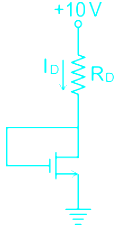 \(V_{GS}' = V_{DS}' = 10 - I_D'R_D' = 10 - 4I_D'\)