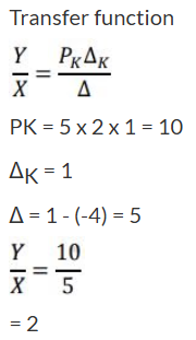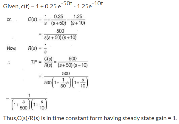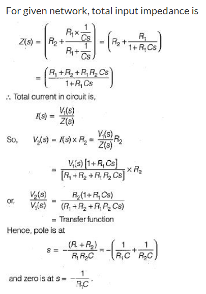 Velocity error coefficient, \({K_v} = \mathop {\lim }\limits_{s \to 0} s \times \frac{2}{{s\left( {s + 4} \right)}} \times K'\frac{{s + 2.3}}{{s + 10.7}} = K'\left( {\frac{2}{4}} \right)\left( {\frac{{2.3}}{{10.7}}} \right)\)