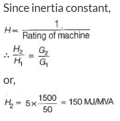 A 1500 MVA synchronous generator has an inertia constant of 5.0 MJ/MVA. The inertia constant of the machine relative to a 50 MVA base is