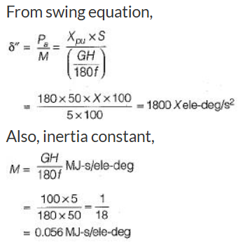 Accelerating torque, \({T_a} = \frac{{{P_a}}}{{{\omega _s}}} = \frac{{60\; \times \;{{10}^6}}}{{157.07}} = 0.3819\;MN - m\)