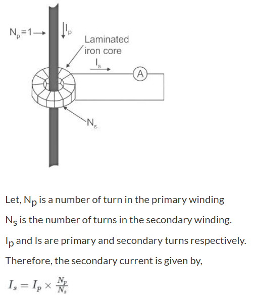 • Therefore, the current transformer changes the current into a lower value that can easily be measured by the measuring instrument.