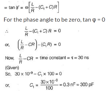 A 100 Ω resistor has a time constant of 30 ns. What is the value of capacitor to be connected in parallel with the resistor to make its phase angle equal to zero?