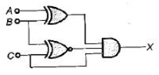 Consider the following logic circuit: What is the required input condition (A, B, C) to make the output X = 1, for the above logic circuit